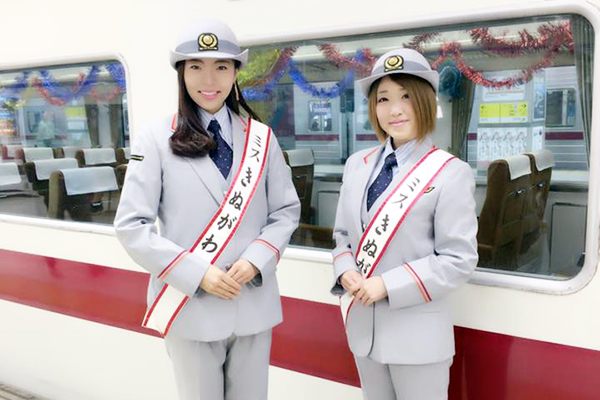 「ミスきぬがわ」(鬼怒川みやび役)のお披露目(東武鉄道制服着用)
