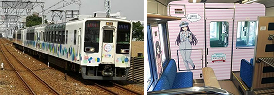 アニメ作品や鉄道むすめの痛車(ラッピン グデザイン車)の中から選りすぐりの車両 を展示して会場内を鮮やかに彩ります。