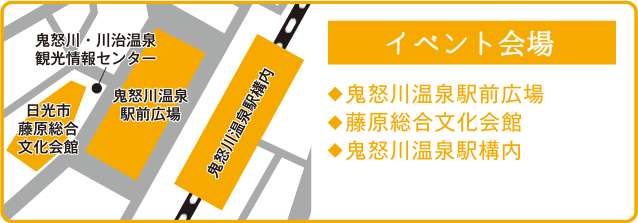 開催場所:藤原総合文化会館(鬼怒川温泉駅前)・鬼怒川温泉駅前広場